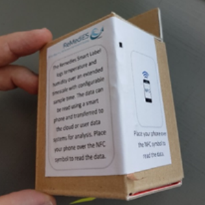 RFID smart label powered by a printed battery cell which records temperature and humidity.