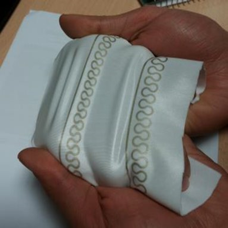 Field application: the creation of conductive tracks into flexible and stretchable substrates for connection of sensors and electronic components.