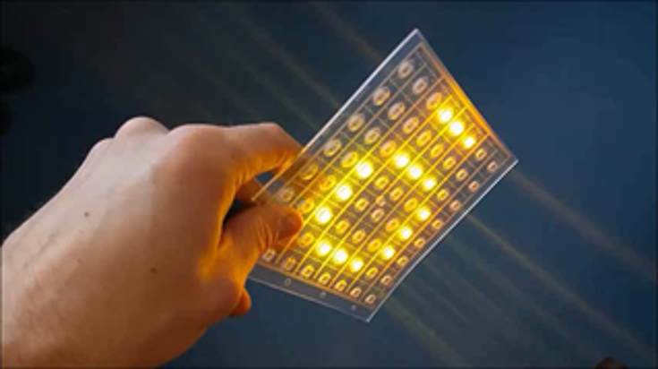 Customized fully controllable LED matrix display, signage and lighting module. The flexible elements can be connected to create large area systems. Current TRL level: TRL6