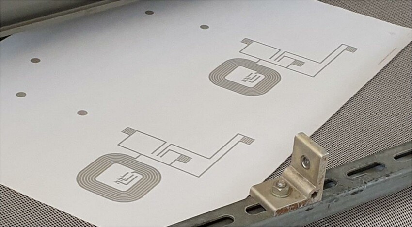 Various NFC Antenna printed on film, paper, glass available using different materials. Integration of NFC IC using adhesive technology. Often the chip is placed on an interposer.